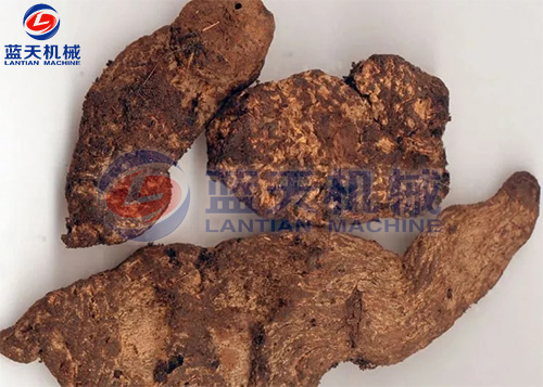 將生地黃洗凈涼干,泡入黃酒中,約3至5天,然后放鍋內加清水烘煮,每百斤鮮生地用黃酒10斤,清水30斤,待酒味浸入地黃(一般需2至3小 時),然后撈出地黃稍涼后放到烘干機里烘干,直至干燥即為熟地。因生地含糖性較高,干的程度以手摸不粘、干硬為主,否則 為濕貨。切記勿用硫磺熏蒸。
