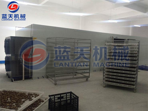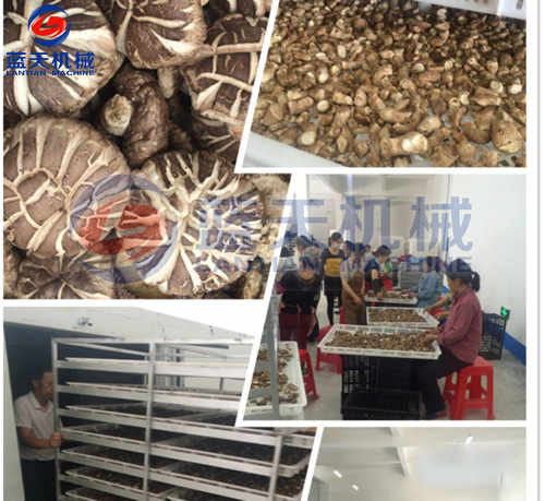 1:準備好物料:采收前一天禁止?jié)菜?適時采收。香菇應(yīng)在四五成熟時采收,一般采收均不能超過八成熟。采收的香菇分好類,先在陽光下暴曬2-3小時,以去除部分水分。裝盤時使菌蓋朝上,菌柄朝下,擺均放正,不可重疊積壓,以防傷菇而影響質(zhì)量。香菇采收后6小時以內(nèi)必須烘烤,如果有冷藏條件,保存時間可適當(dāng)延長。