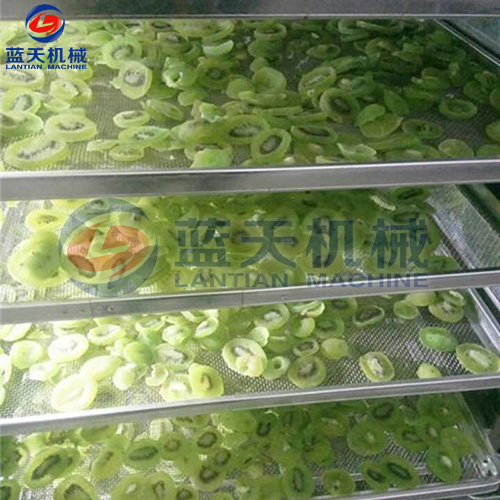 將糖煮好的獼猴桃果實(shí)撈出,瀝干糖液,放在竹篩網(wǎng)(或不銹鋼網(wǎng))上,送入烘房內(nèi)烘干。烘干時(shí)應(yīng)將前期溫度控制在50℃,待果實(shí)半干時(shí),再將溫度提高到55~58℃,繼續(xù)干燥20小時(shí)左右即可。干燥好的果脯要求外部不粘手,捏起來有彈性。