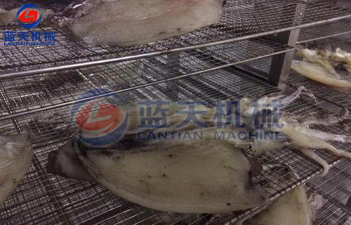 由于魷魚墨魚不僅水分大,而且水分存在于脂肪和油脂中,脫水就比其他類別的物料要更困難,而控制其脫水速度和排濕量是決定魷魚烘干質(zhì)量的重要因素之一,脫水速度和排濕量的掌握對保持海產(chǎn)品烘干后的色澤尤為重要。魷魚墨魚烘干要避免水汽在魷魚體表停留,排濕不暢,而導(dǎo)致細(xì)菌滋生。