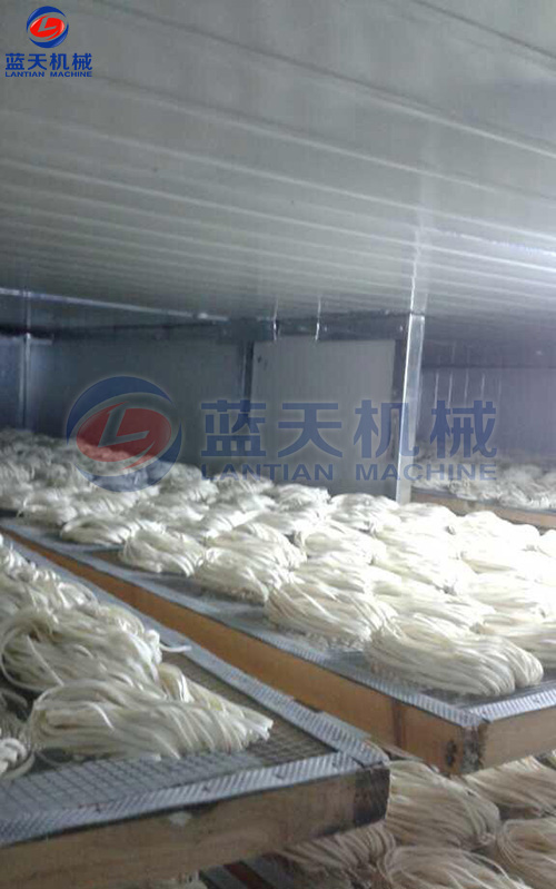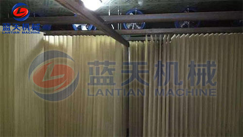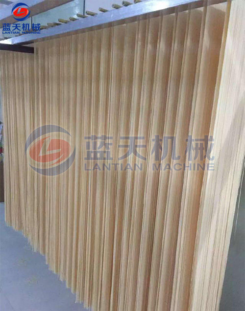 有些掛面容易在烘干過程中容易斷,有些不容易斷(玉米淀粉有幫助!),有些不能耐受溫度,溫度一高就容易斷,如果用太陽曬的話,盛夏上午10點(diǎn)鐘的太陽就能把掛面曬斷。有些溫度可以高一些。有些掛面一定要大量的風(fēng)量,否則中間的掛面就酸掉了!面條烘干機(jī)系統(tǒng)設(shè)計(jì)中非常重要的環(huán)節(jié)就是風(fēng)路設(shè)計(jì),對于大部分掛面的烘干來說,使用頂出風(fēng)機(jī)組再結(jié)合上下風(fēng)路更利于風(fēng)路循環(huán),更利于面條的烘干。