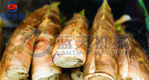 新鮮竹筍切掉老根去皮,清洗干凈后放進(jìn)蒸煮鍋里蒸煮,蒸煮后撈出過冷然后用壓片機(jī)進(jìn)行壓片脫水。