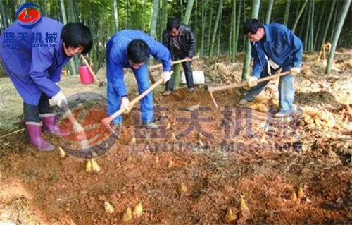 到竹林里挖竹筍。選筍開挖準(zhǔn)則:選擇地面凸起開裂的的地方并延著凸起外圍開挖,避免破壞竹筍。還沒冒出地面的竹筍鮮嫩,已冒出地面的竹筍老,纖維多不要挖。