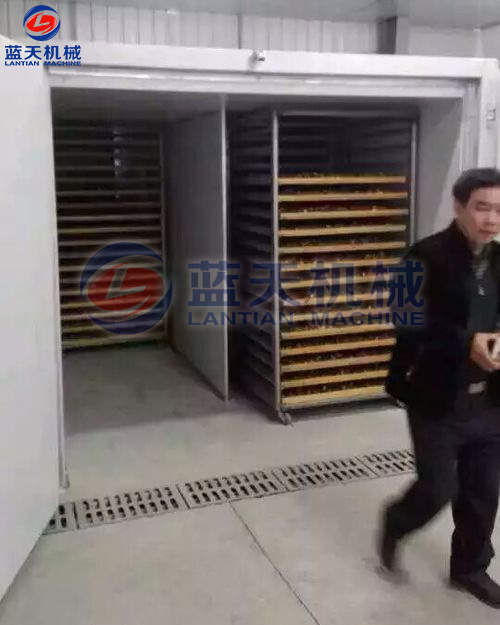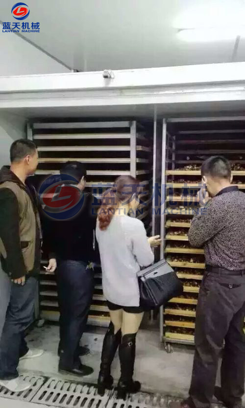 總時間控制在四個小時以內(nèi),一般會分四段進行干燥。一般在第一個區(qū)段設(shè)置的時間在3小時左右,設(shè)置的溫度可以上到35℃,濕度控制在70%以內(nèi)。羊肚菌烘干要求形狀要飽滿,羊肚菌中間是空的,中間不能塌掉,塌掉就不值錢了,通過3個小時進行一個低溫的定性定色。