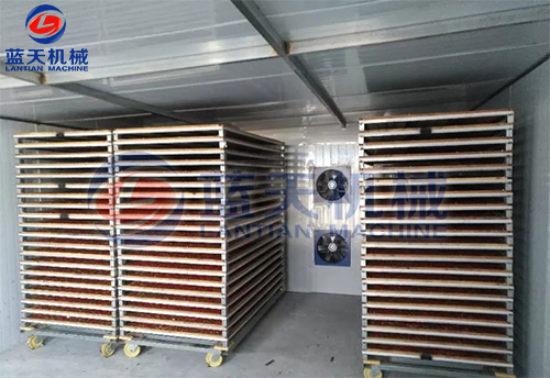 定色干燥期結(jié)束后進(jìn)入干仁期,溫度控制在30℃-35℃,約16個(gè)小時(shí),此時(shí)核果含水量達(dá)10%左右。