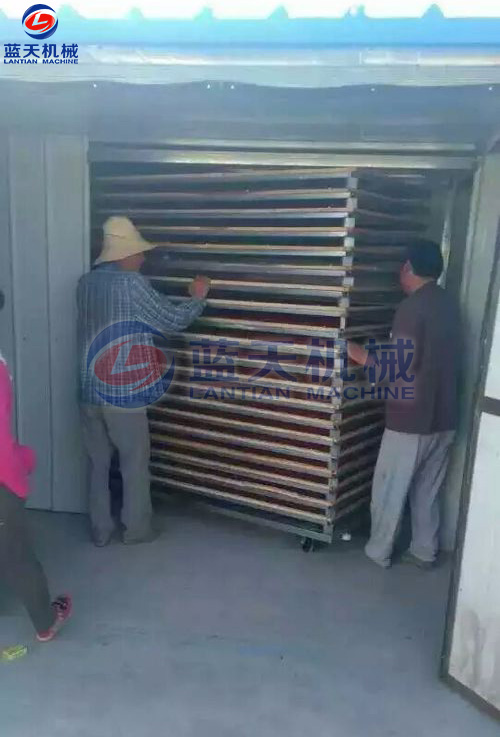 當(dāng)果實含水降到一定數(shù)值(30%左右)后,果內(nèi)的導(dǎo)熱性變小,內(nèi)外溫差增大,當(dāng)室內(nèi)熱空氣達到55℃-60℃時,由于果內(nèi)水分越來越少,水分的外移蒸發(fā)速率下降,水分滲出緩慢,所以還需相當(dāng)?shù)臅r間來緩慢排出。此期約10個小時才能使果實含水降到13%以下。