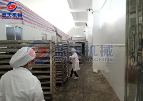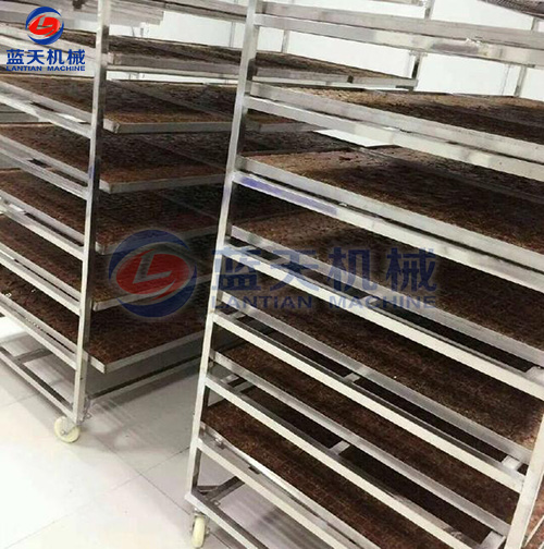 紅糖烘干工藝:將紅糖磚切成方塊狀,置入托盤中,在物料架中分層放好,注意層與層之間的距離,將物料車推入烘干房,開始啟動(dòng)溫濕控制系統(tǒng),在紅糖烘干機(jī)的使用過(guò)程中,第一個(gè)小時(shí)可以只升溫不排濕,因?yàn)樵诠ぷ鞯牡谝浑A段,烘干房里面的濕度很低。第二階段設(shè)定為烘干加排濕的工作程序模式。紅糖烘干機(jī)帶有余熱回收功能。在排濕過(guò)程中的熱量會(huì)重新參與到烘干房的熱循環(huán)。排濕過(guò)程當(dāng)中不會(huì)造成熱量浪費(fèi),從而降低了運(yùn)行成本。