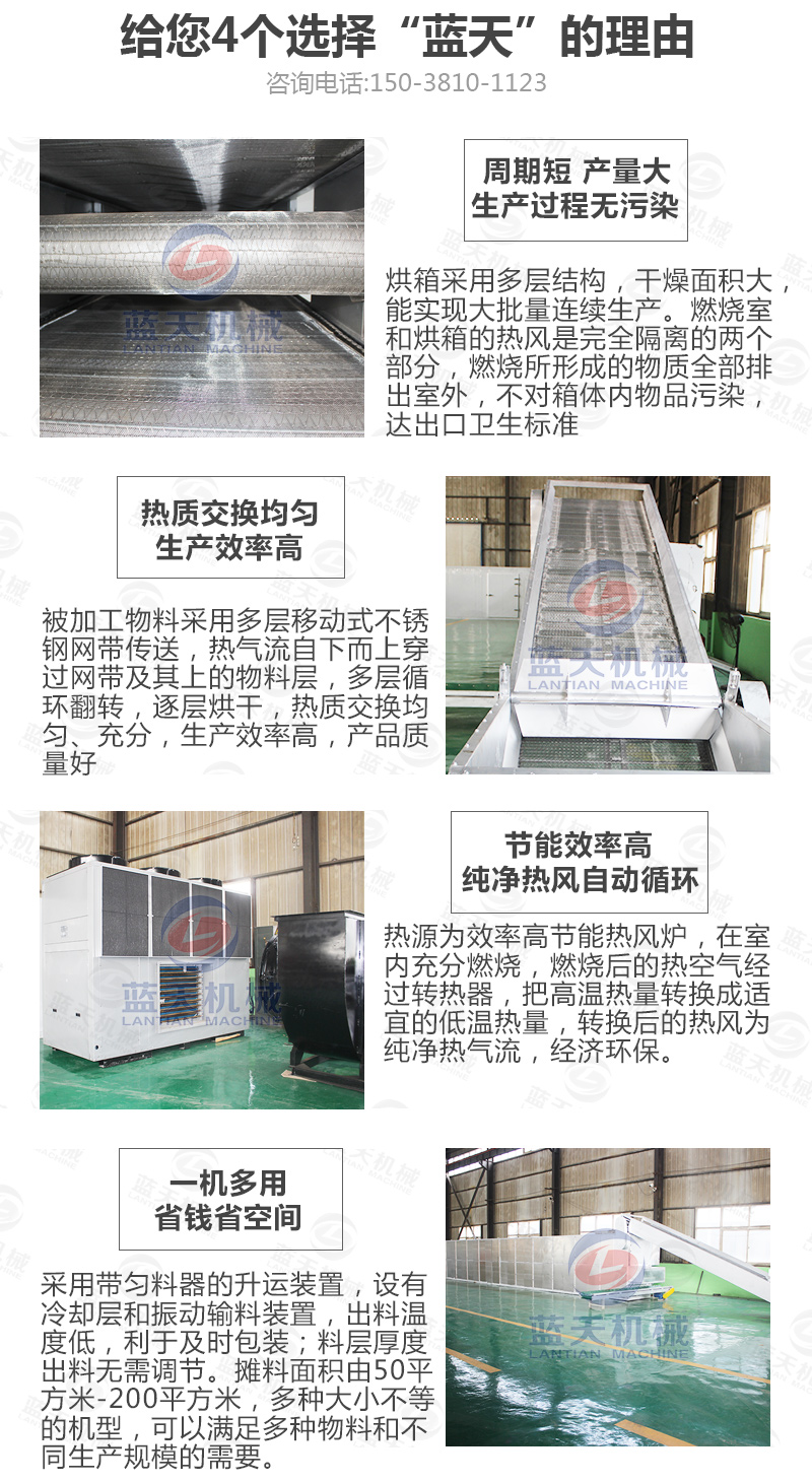 3、山藥片網(wǎng)帶烘干機設備性能: