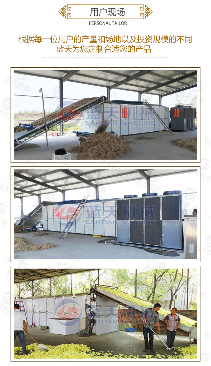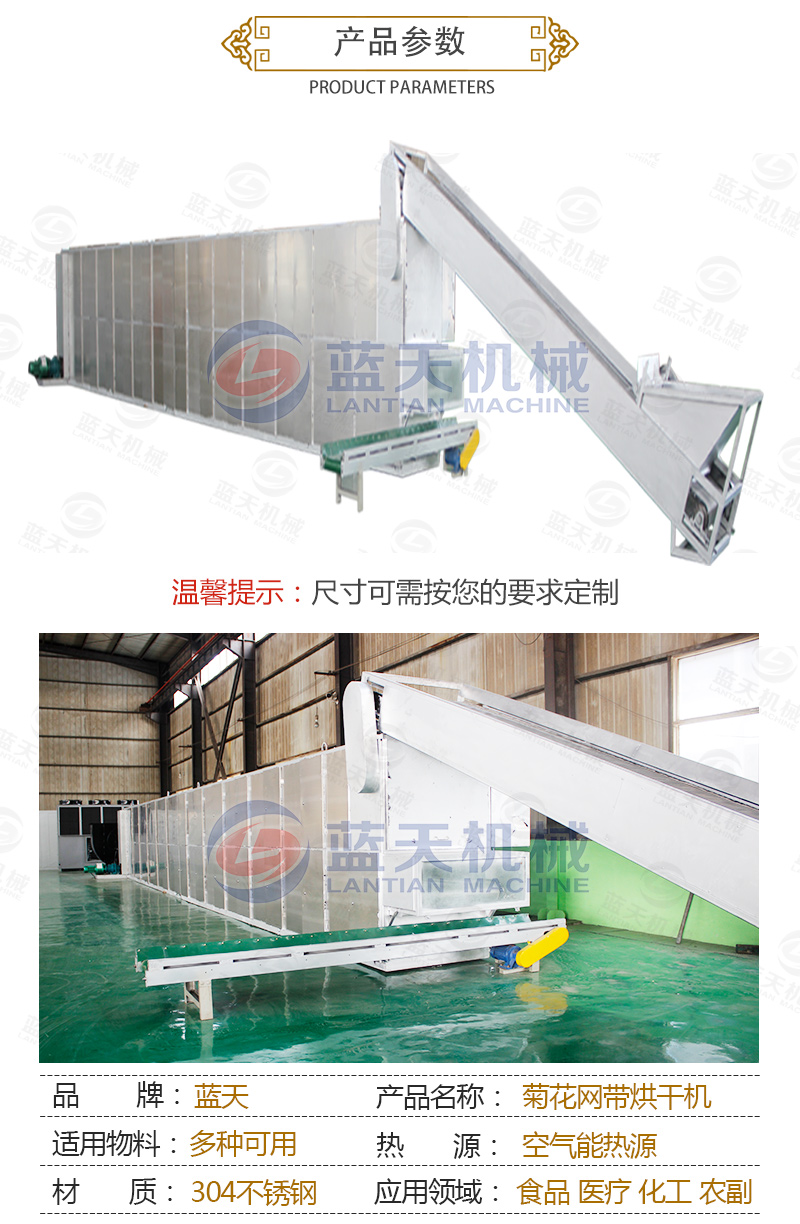 隨著生活水平的提高和壓力的增大,人們都逐漸注意養(yǎng)生,干菊花的市場是很大的。干菊花大多用于泡茶飲用,具有味濃香甜、去膩消食、醒腦益神之功能。菊花收獲的旺季,一直靠天晾曬菊花的菊農(nóng)就怕遇見陰雨天。隨著社會的進步,科技的發(fā)展,智能烘干設備越來越深得用戶的滿意,菊花網(wǎng)帶烘干機讓菊農(nóng)徹底擺脫了靠天烘干收獲菊花的苦惱。同時牽扯到人們食用,菊花網(wǎng)帶烘干機工藝要求就很是嚴格的,因為很多菊花需求商對于烘干后的菊花的色、香、形、味要求很高,要求干燥烘干后的菊花原色、原味、原樣,這就要求菊花成熟后烘干,菊花頭部分進行強干燥烘干,而對菊花花瓣部分進行弱干燥烘干。我們藍天菊花烘干機設備廠家主營的烘干機采用智能化控制溫度,全自動免人工操作,省時省力,讓菊花客戶打心里贊同和喜歡。