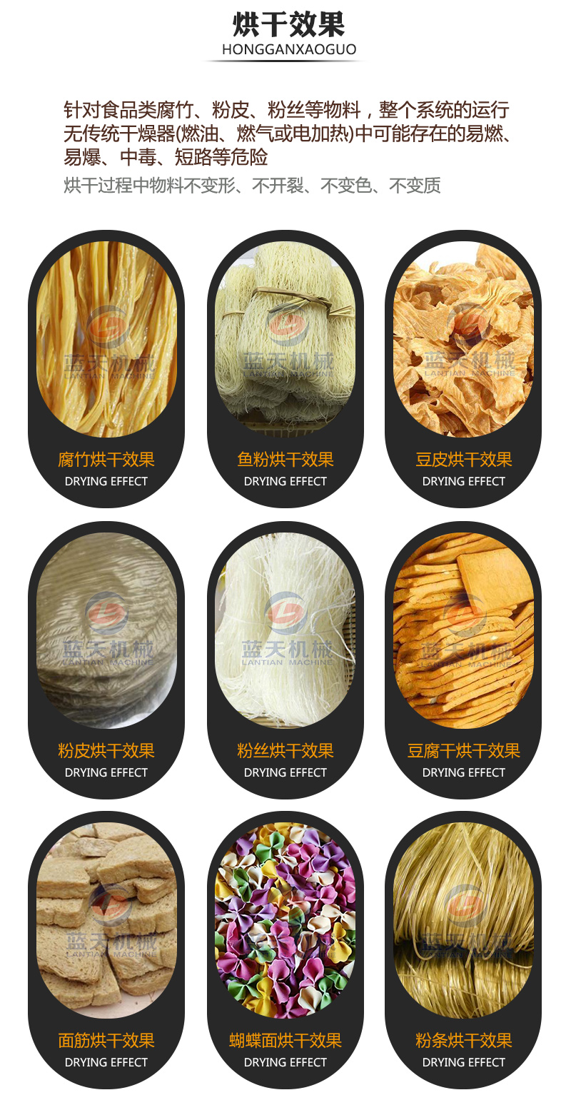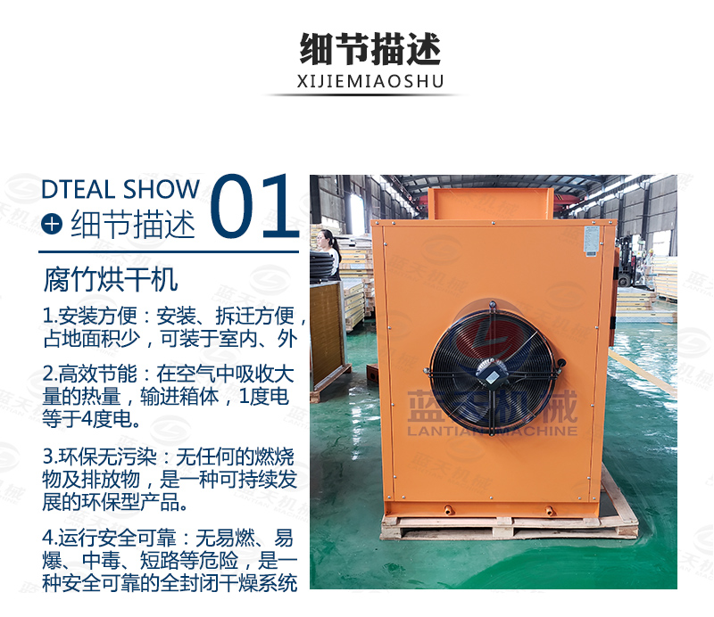 在很多地區(qū),腐竹烘干的市場(chǎng)也很大,近年來(lái),隨著腐竹生產(chǎn)技術(shù)和烘干技術(shù)的提高,使用熱泵腐竹烘干機(jī),不用燒煤、燒柴、不用鍋爐、蒸氣,只需少量的電能來(lái)驅(qū)動(dòng)壓縮機(jī)就可以獲得所需要的高溫?zé)崃浚⑶野踩l(wèi)生、環(huán)保沒(méi)有污染、無(wú)廢氣排放、運(yùn)行電費(fèi)超低。